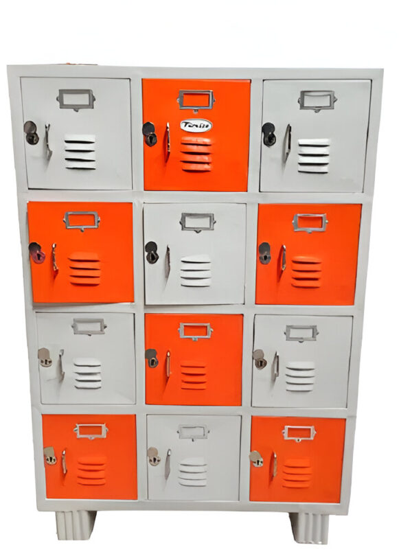 UR Biocoction presents a durable and space-efficient 12-Door Industrial Locker Cabinet, designed for optimal personal storage in industrial, commercial, and institutional environments. Crafted from high-grade CRCA steel, this locker unit features a powder-coated finish in alternating orange and grey colours, offering both functionality and aesthetic appeal.