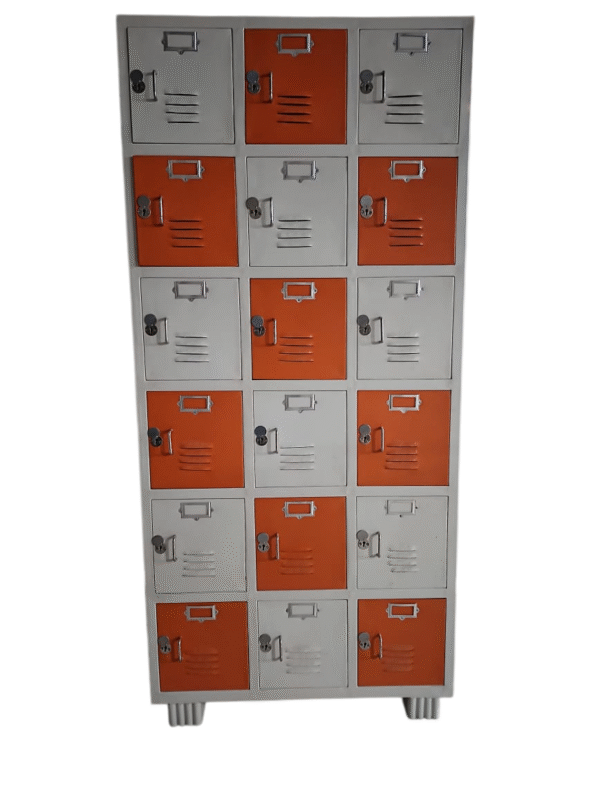 18-Door Multi-Color Industrial Locker Cabinet Product Description: UR Biocoction presents a durable and space-efficient 18-Door Industrial Locker Cabinet, designed for