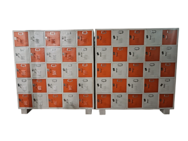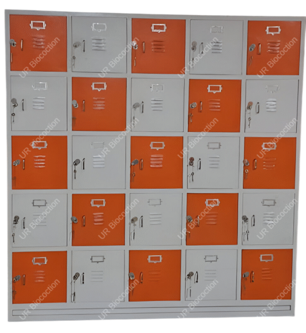 UR Biocoction presents a durable and space-efficient 25-Door Industrial Locker Cabinet, designed for optimal personal storage in industrial, commercial, and institutional environments. Crafted from high-grade CRCA steel, this locker unit features a powder-coated finish in alternating orange and grey colours, offering both functionality and aesthetic appeal.